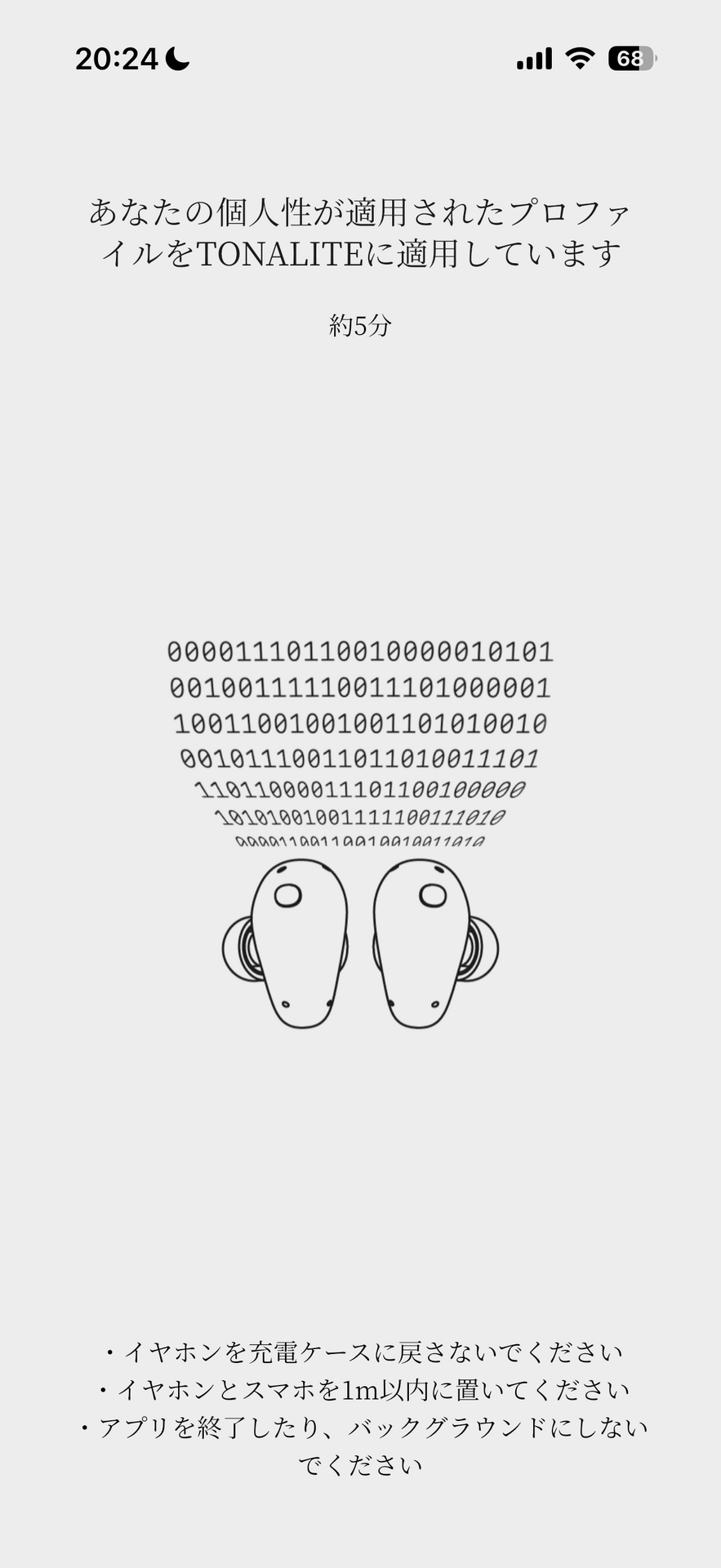 今度はTONALITEをイヤーピースを取り付けて耳に装着します。すると耳にキュイーンというスイープ音が強弱で聞こえ、すぐ測定は終わります。これは簡単です。